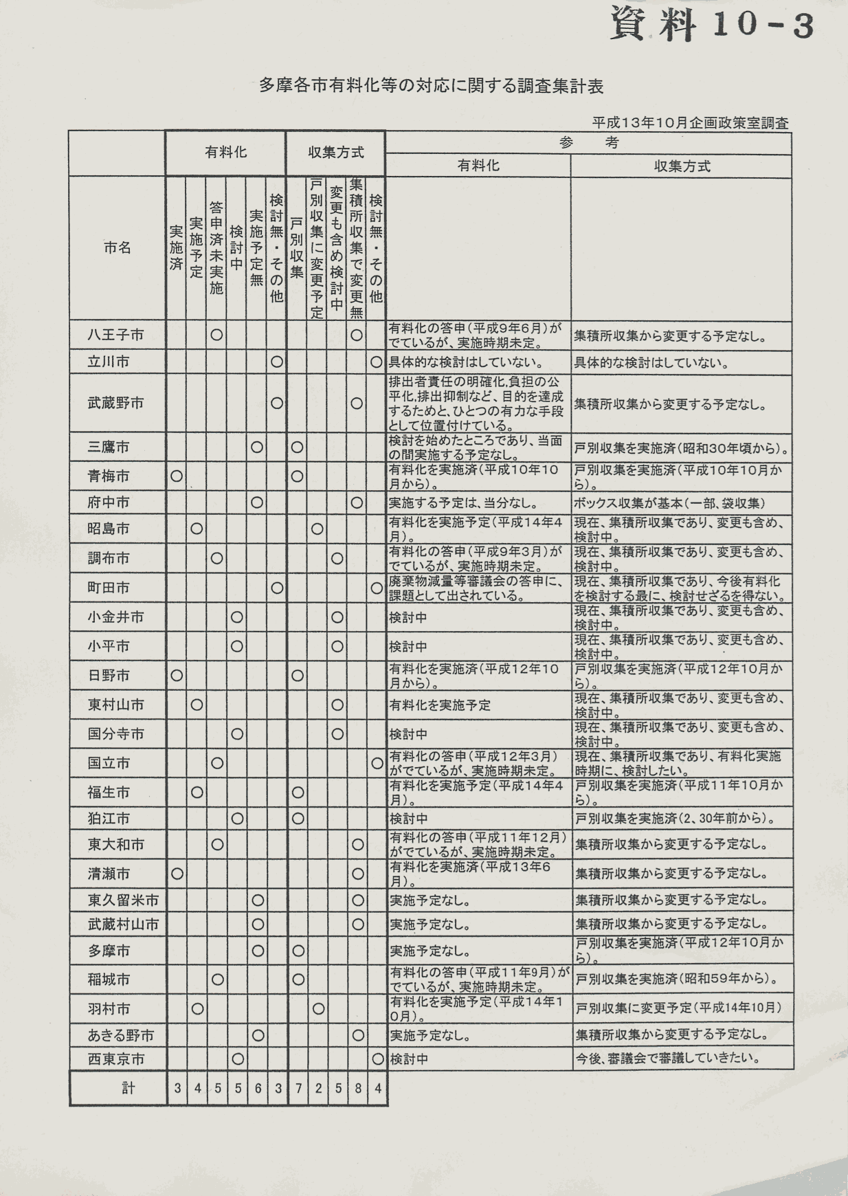 註:この集計表は市長会事務局の質問に対し各市の担当者が回答したものであり、