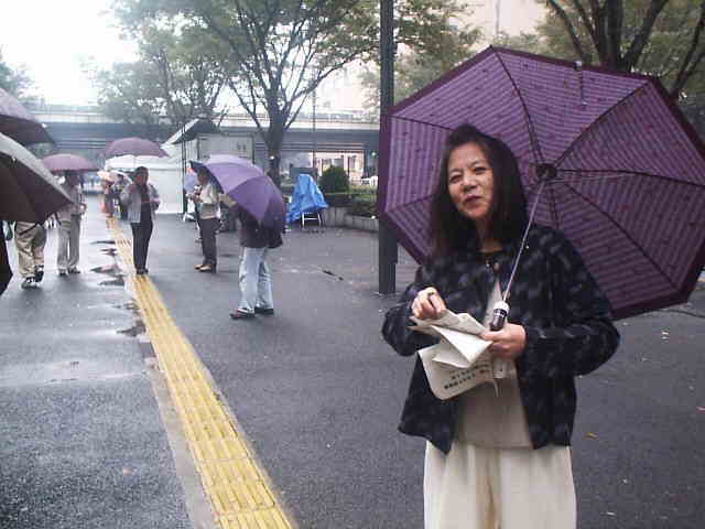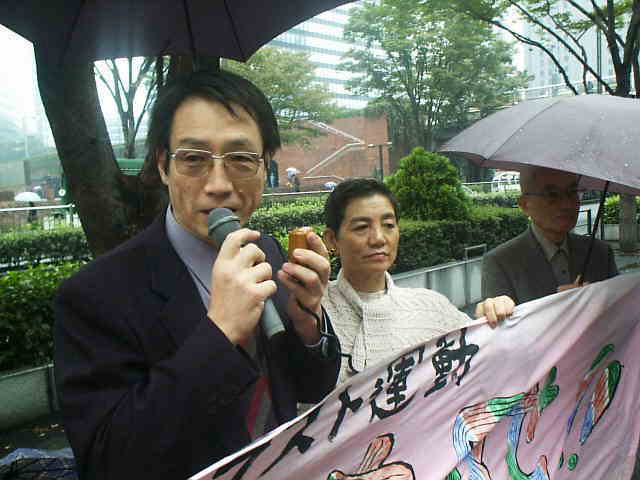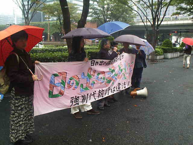 昨年の強制収用から1年たった10月17日、述べ20名の地権者が集まり都庁で抗議のビラを配り、都庁へ来訪する都民と通行人にアピール行動を行いました。折からの雨の中、参加者が次々とマイクを持って石原知事の行政代執行の強行に強く抗議しました。またトラスト地は収用されても、日の出処分場の問題は何も解決していないことを訴え、行政と住民が共に取り組んでいくことで問題は解決するはずだと、知事の反省を求めました。