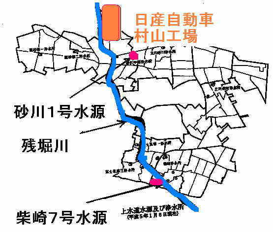 このことを受けて、過去の水道水源の水質や日産自動車工場がかって排水を流していた残堀川の状況、立川市の水道水源との関連などを質問しました。