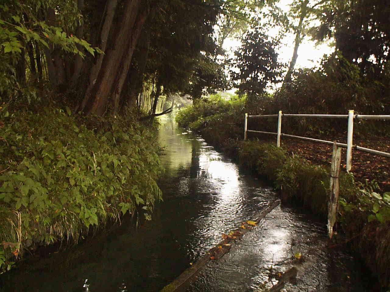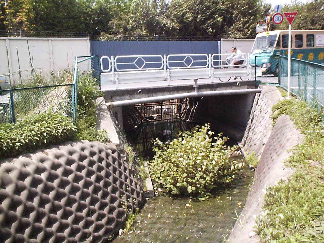 日産自動車第4通用門 同工場南端から流れ出す旧「残堀川」
