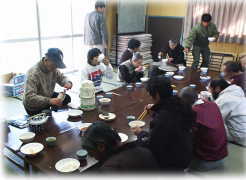 今回は富士見町6丁目の親生会公会堂をお借りして炊き出しをしました。大なべを沸かすのに大型のプロパンガスコンロまで貸していただきました。80人分くらいを想定して作ったけど、立川・日野地区の人たちが自立ホームに入ったことと、府中の是政橋周辺の人が、不在の人が多くて少し余りましたが、皆さんに持ち帰ってもらったり、不在の仲間の方の分を保管してもらいました。