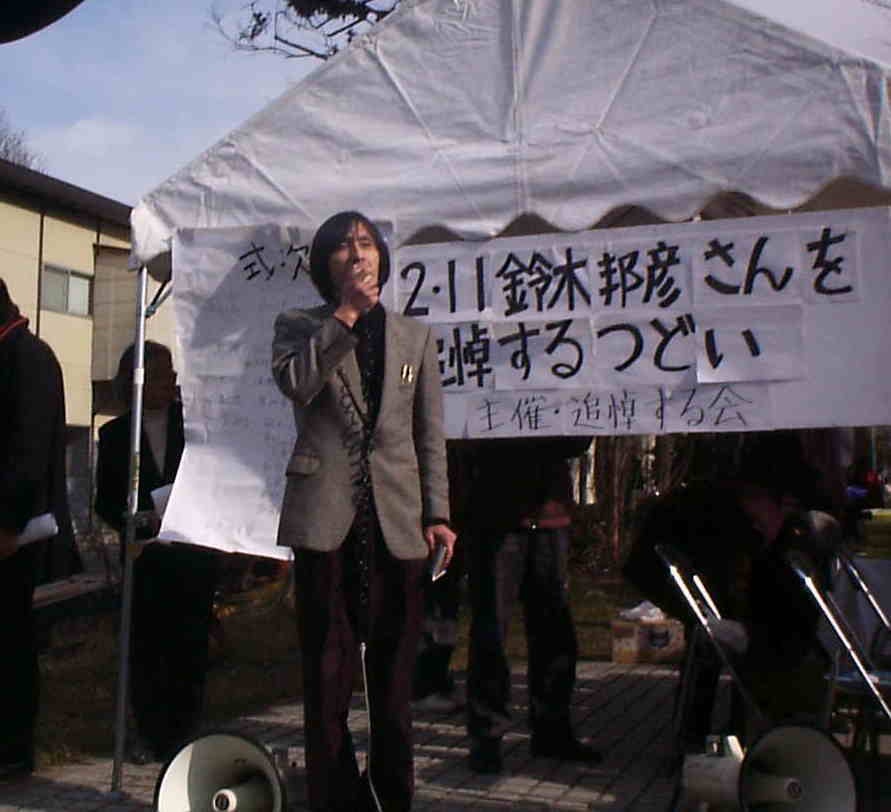 その後、また初めの場所に戻って多くの人からの話をいただきました。鈴木さんと親しかった人としてお二人の方から話をいただきました。野宿者ではない人だけど話をし、個人的に支援をしたなどの話でした。東村山市で野宿生活をされている方は参加されていないようでしたので、新宿・池袋・などで野宿生活を余儀なくされている方からの怒りと、追悼の発言がありました。