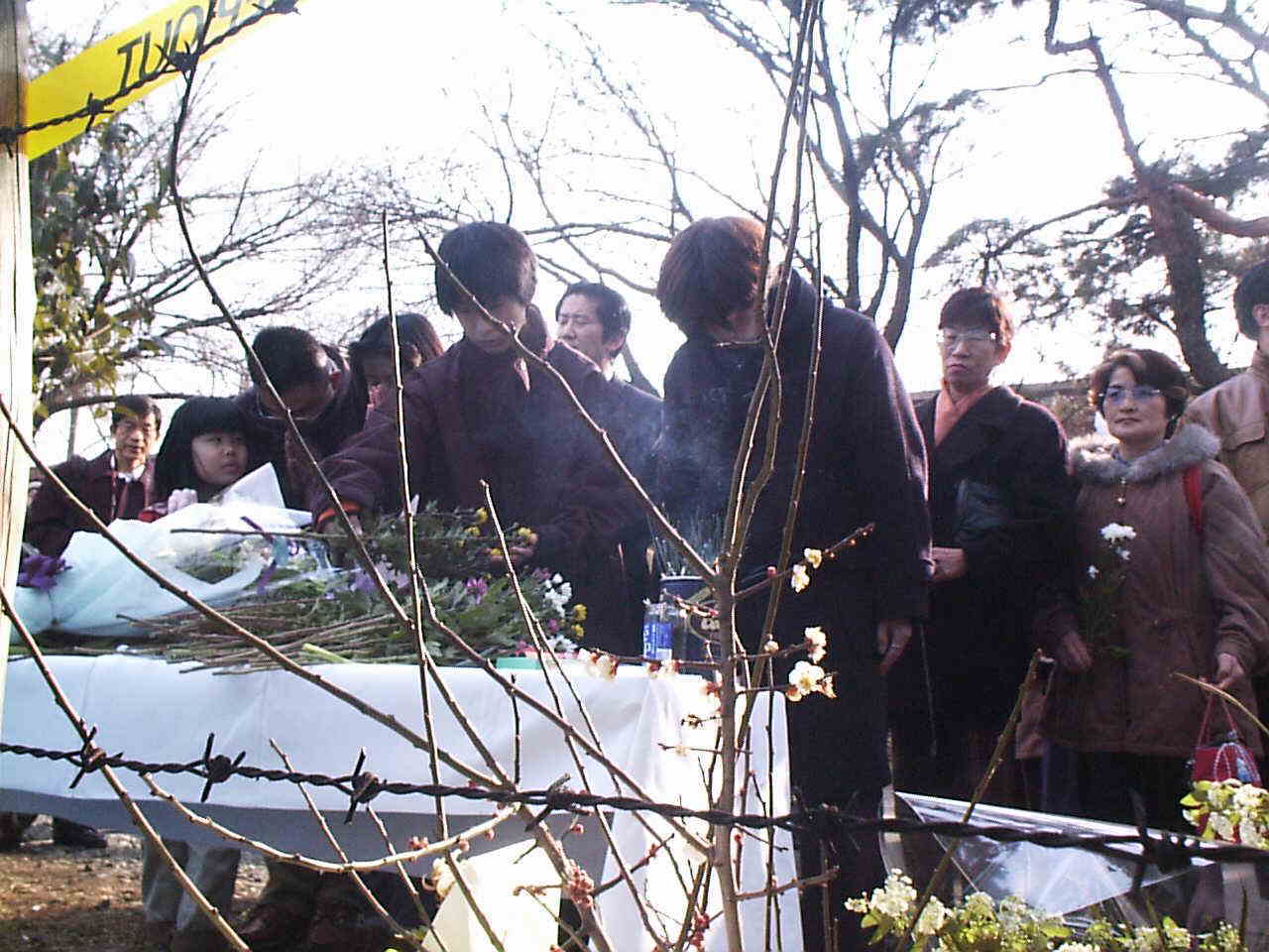 引き続き、参列者のみなさんに花を捧げ、追悼の祈りをしてもらいました。